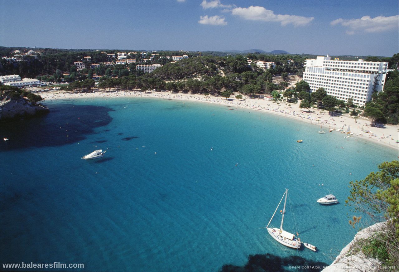 Cala Galdana, Cala Santa Galdana or Cala Santagaldana is situated at seven kilometres from Ferrerees. This beach is considered the most visited and popular in Menorca, one of the most beautiful and touristy centres isolated in a wide and virgin natural region. This sea inlet is the origin of an enormous bay, surrounded by quite high rocks, covered by thick pine woods and houses.