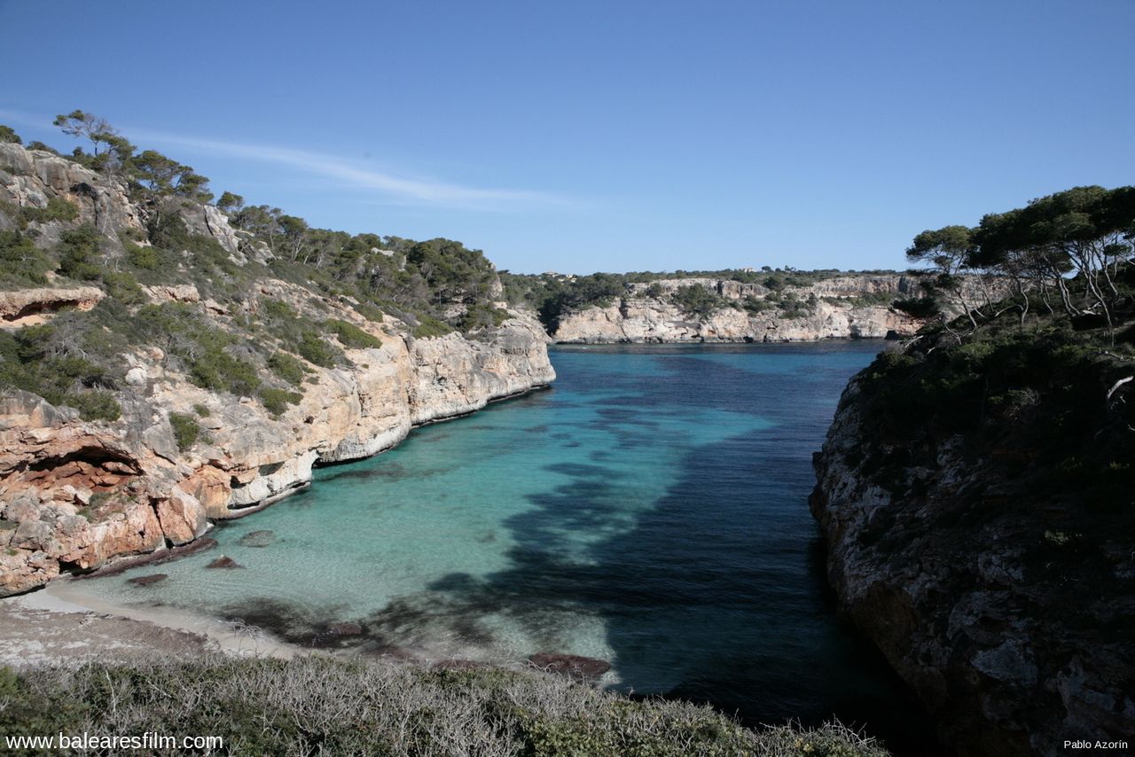 Caló des Moro nestles between high natural walls that are home to pine trees and shrubs. The crystal-clear water, open to the winds from the east-southeast, has a sandy seabed that is excellent for diving and for beaching small boats.