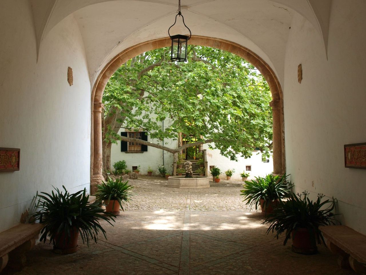 These buildings revolve around the "clastra", the typical Mallorcan cobbled central patio, which presides over a centennial tree cataloged by its large dimensions. Another very characteristic element of the estate is its monumental Baroque facade, with its stairs to get on the horses