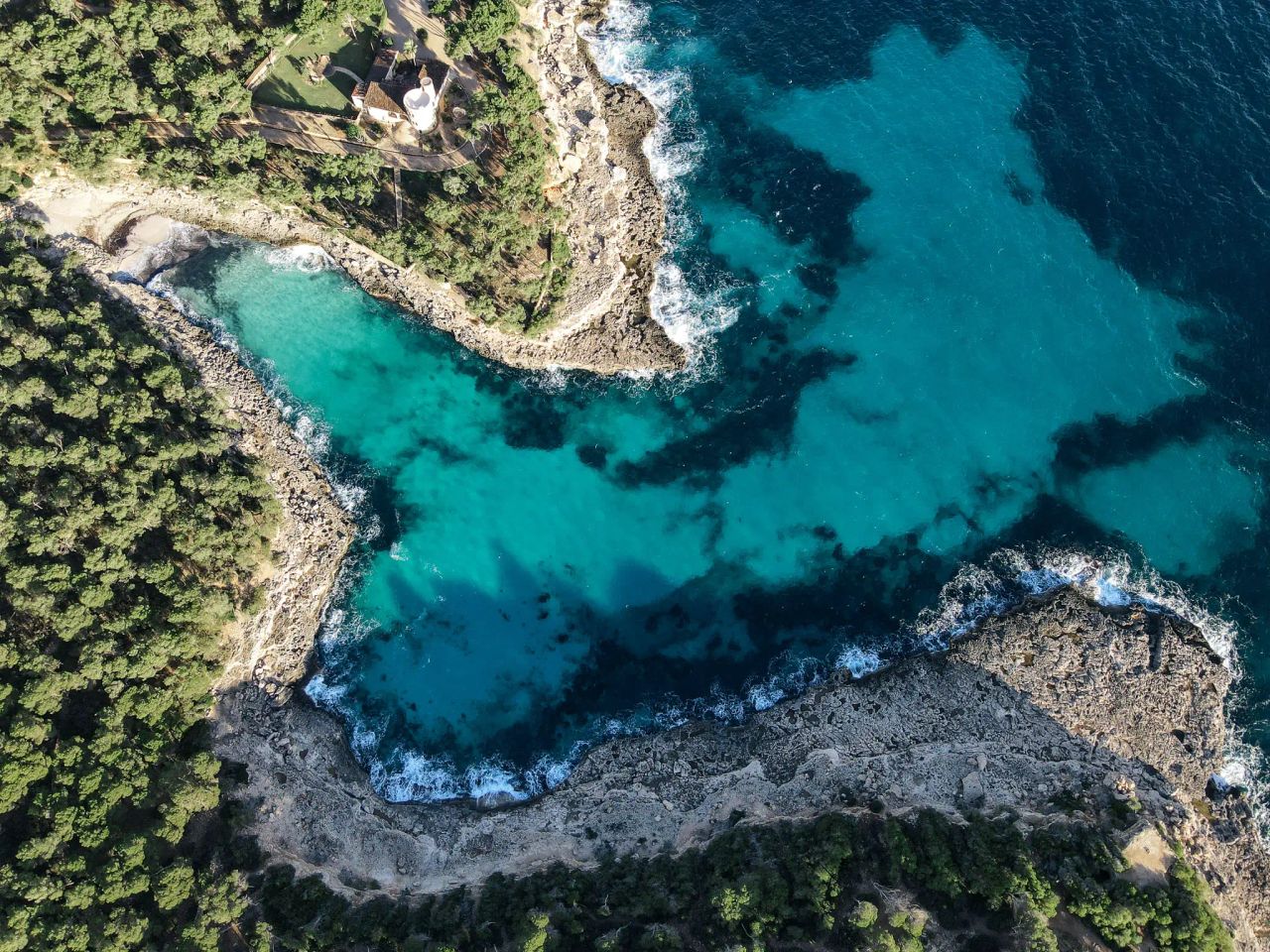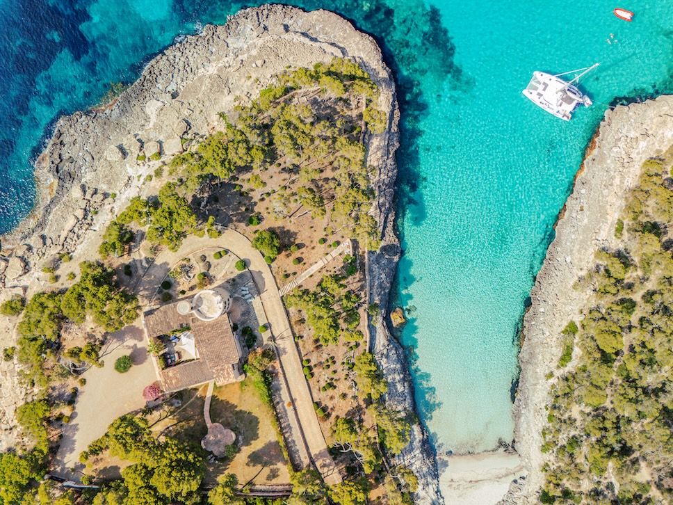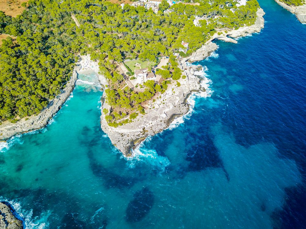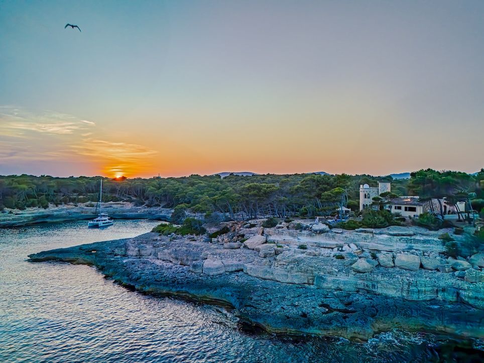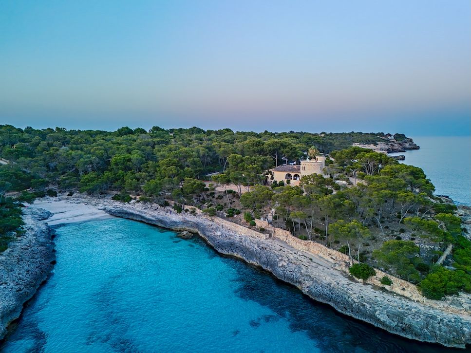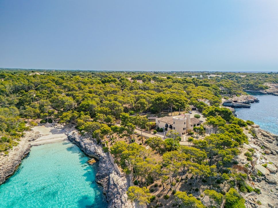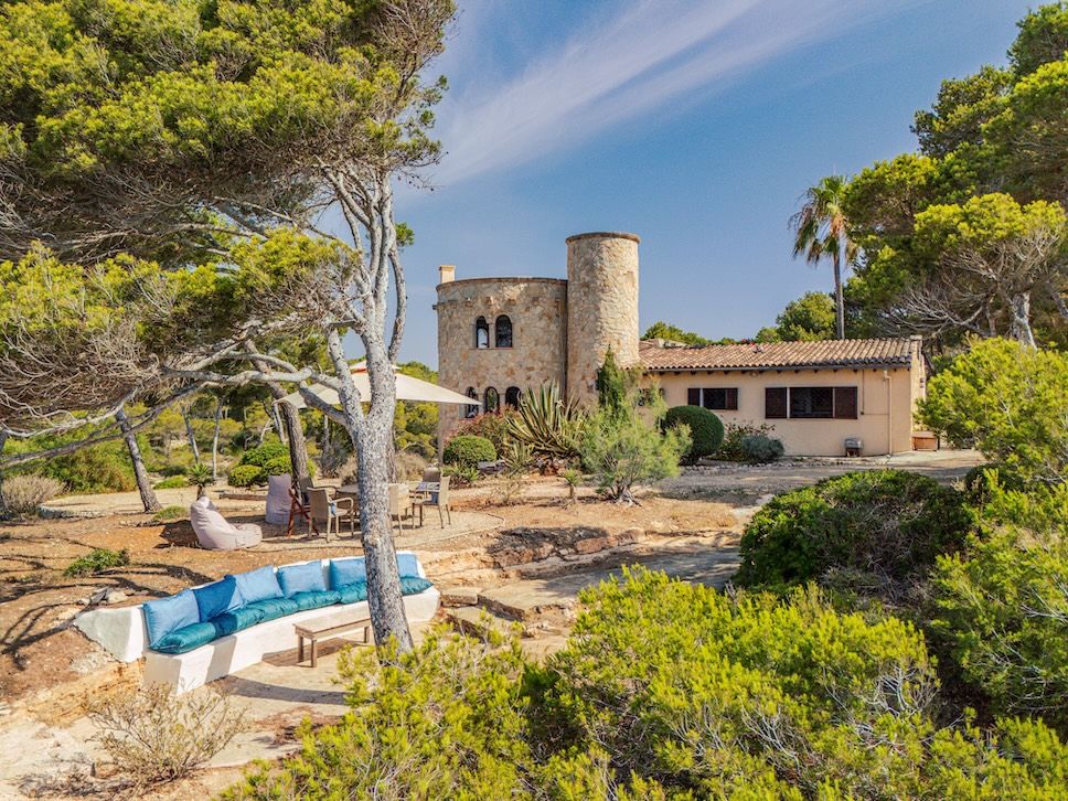 Casa Andromeda is a striking coastal finca and private estate located within the Parc Natural de Mondragó in Santanyí, on the southeast coast of Mallorca, Spain. Built in 1960, the property occupies 37,000 m² (3.7 ha) of pine forest, rocky cliffs, and uninterrupted 280-degree sea and headland views. It sits in one of the quietest stretches of coastline, with no through roads or public footpaths crossing the estate.