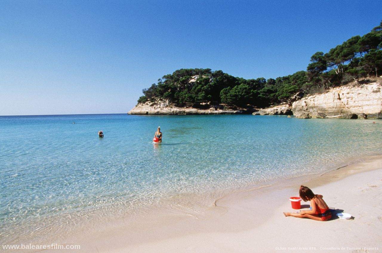 Cala Mitjana is located at seven kilometres from Ferreries. The beach is the result of a sea inlet (192 metres large at the entrance) which is the origin of a small cove on the right side (west), called Cala Mitjaneta. This coastal corner, virgin and isolated, is characterized by being quite big. The beach has fine-grained white sand, it is surrounded by quite high rocks covered by a thick pine wood and some houses. The water is calm and crystal clear.