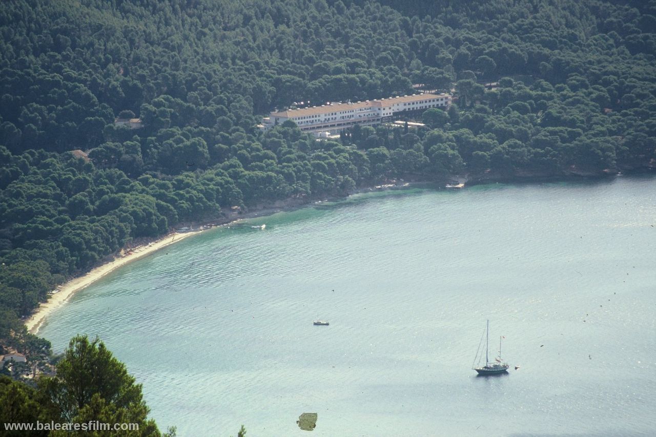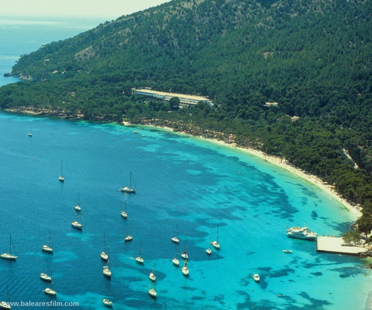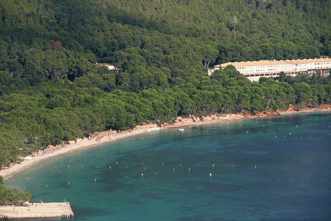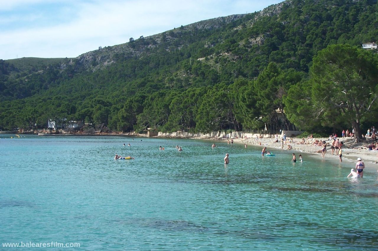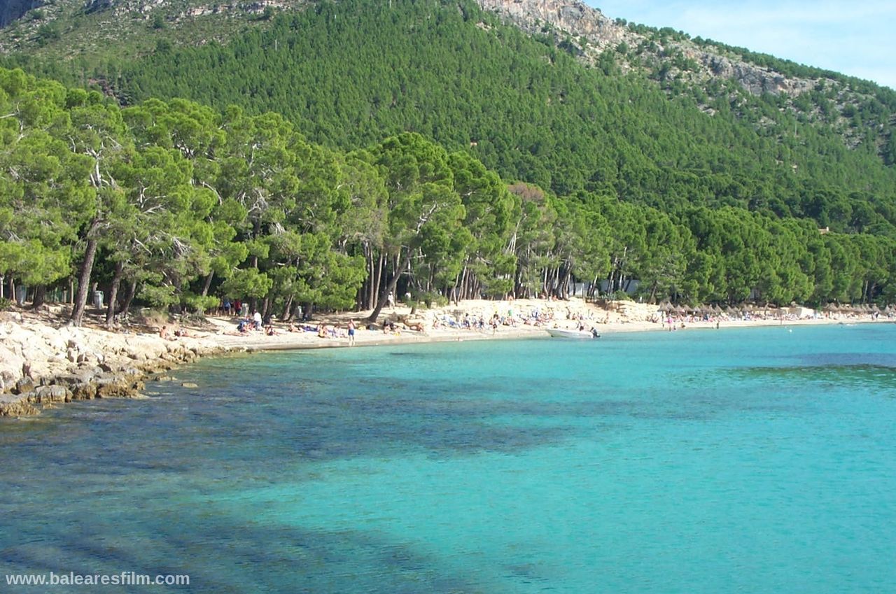 Cala Formentor or Cala Pi de sa Posada is an inlet in the interior of which is located Cala Gentil, as well as Platja de Formentor, the famous hotel with the same name and in front of its coast the Illa de Formentor. The nearest village is Port de Pollença, at 14 kilometres. Hotel Formentor is internationally well known thanks to the famous artists and politicians who stayed here, as well as because of the important events which are organized here. Audrey Hepburn, Grace Kelly, Charles Chaplin, Gary Cooper, Cary Grant, Peter Ustinov, John Wayne, Claudia Cardinale, Joane Fontaine, Jane Birkin… and others have been here. This sandy area is very long but narrow and it is formed by very fine-grained sand of a very clear and white colour. There is a very thick and green pine and holm oak wood on the headland of Formentor that surround this beach. The branches of the trees nearly touch the crystal clear water of the Mediterranean Sea on this wonderful coastal area.