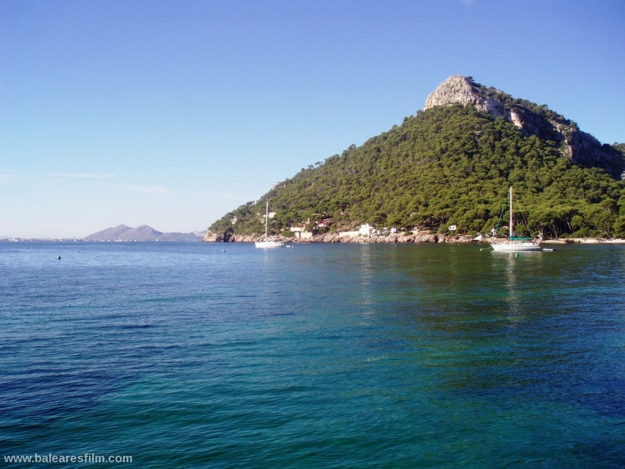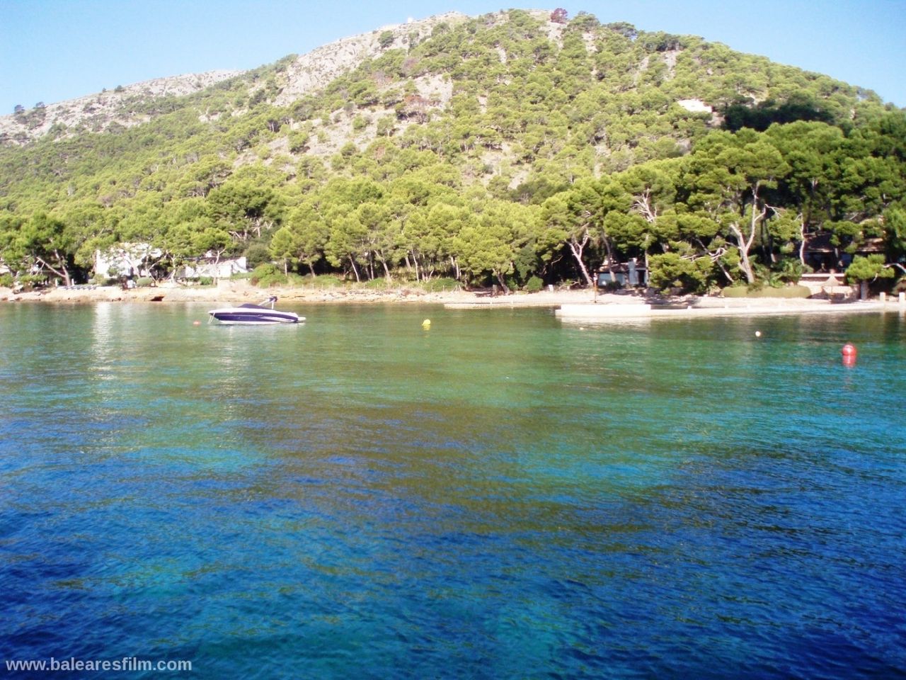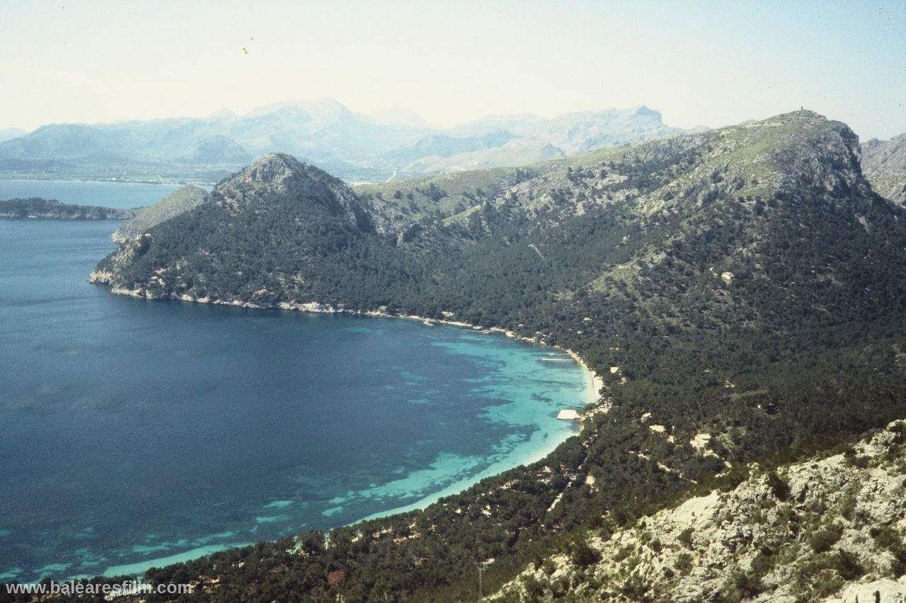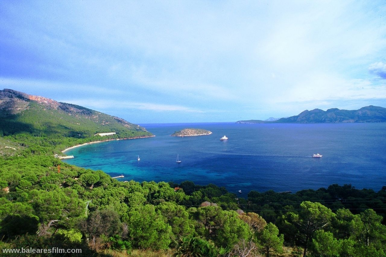 Cala Formentor or Cala Pi de sa Posada is an inlet in the interior of which is located Cala Gentil, as well as Platja de Formentor, the famous hotel with the same name and in front of its coast the Illa de Formentor. The nearest village is Port de Pollença, at 14 kilometres. Hotel Formentor is internationally well known thanks to the famous artists and politicians who stayed here, as well as because of the important events which are organized here. Audrey Hepburn, Grace Kelly, Charles Chaplin, Gary Cooper, Cary Grant, Peter Ustinov, John Wayne, Claudia Cardinale, Joane Fontaine, Jane Birkin… and others have been here. This sandy area is very long but narrow and it is formed by very fine-grained sand of a very clear and white colour. There is a very thick and green pine and holm oak wood on the headland of Formentor that surround this beach. The branches of the trees nearly touch the crystal clear water of the Mediterranean Sea on this wonderful coastal area.