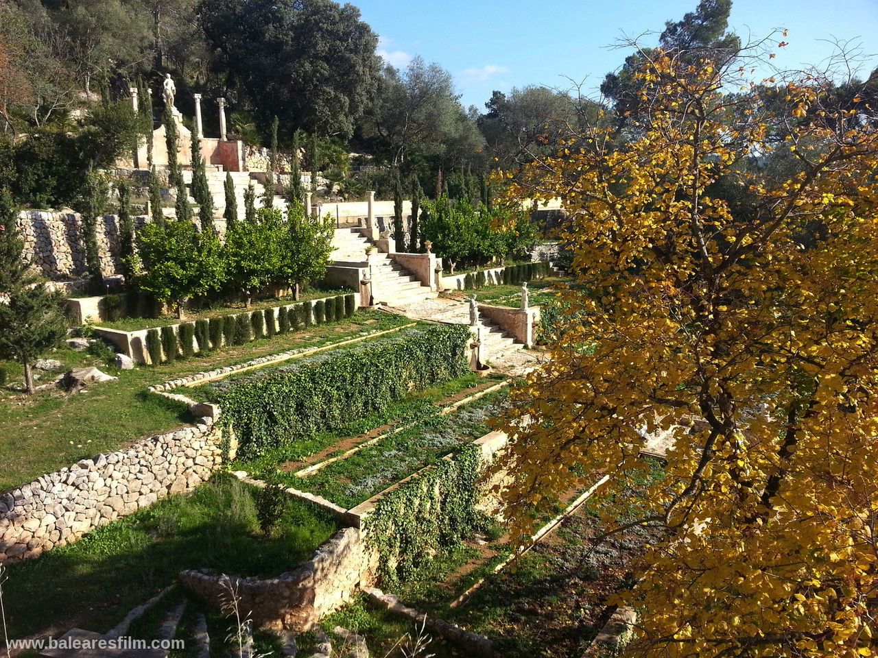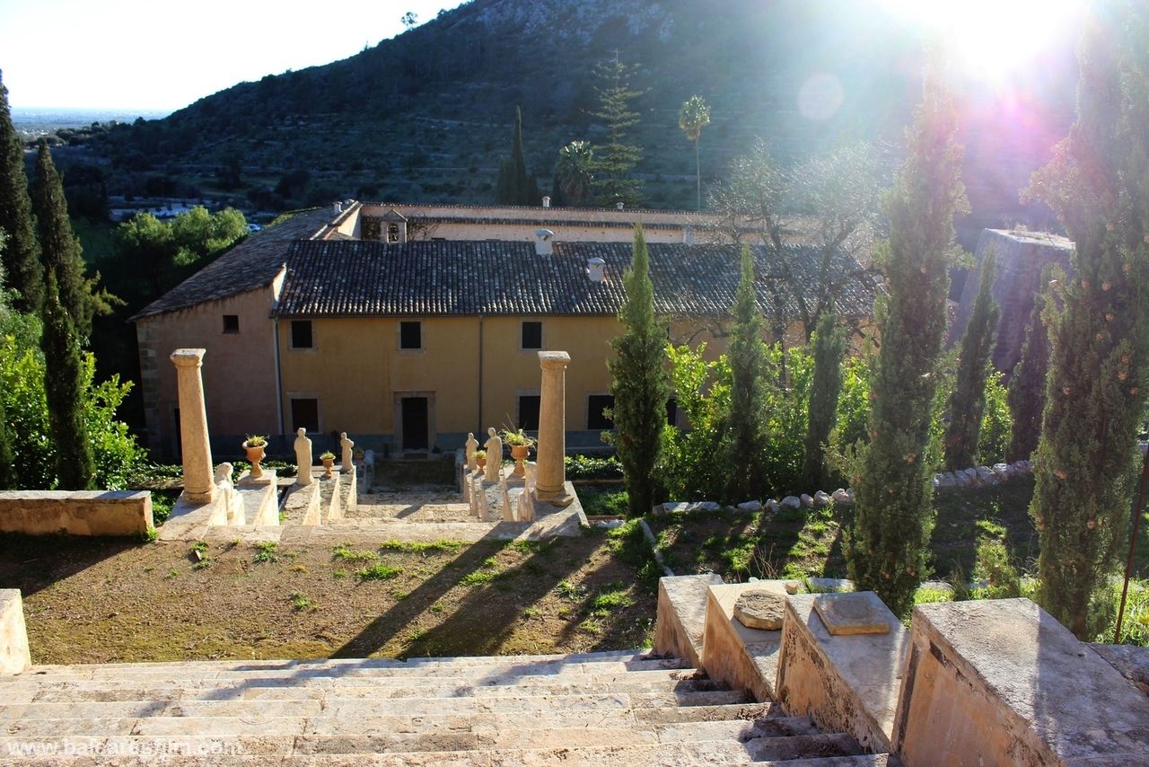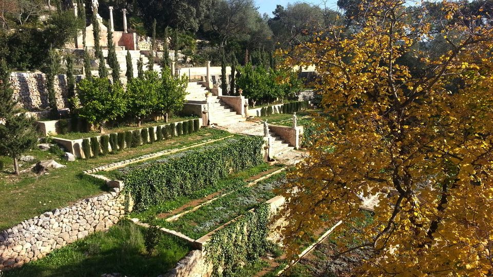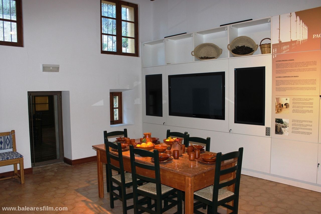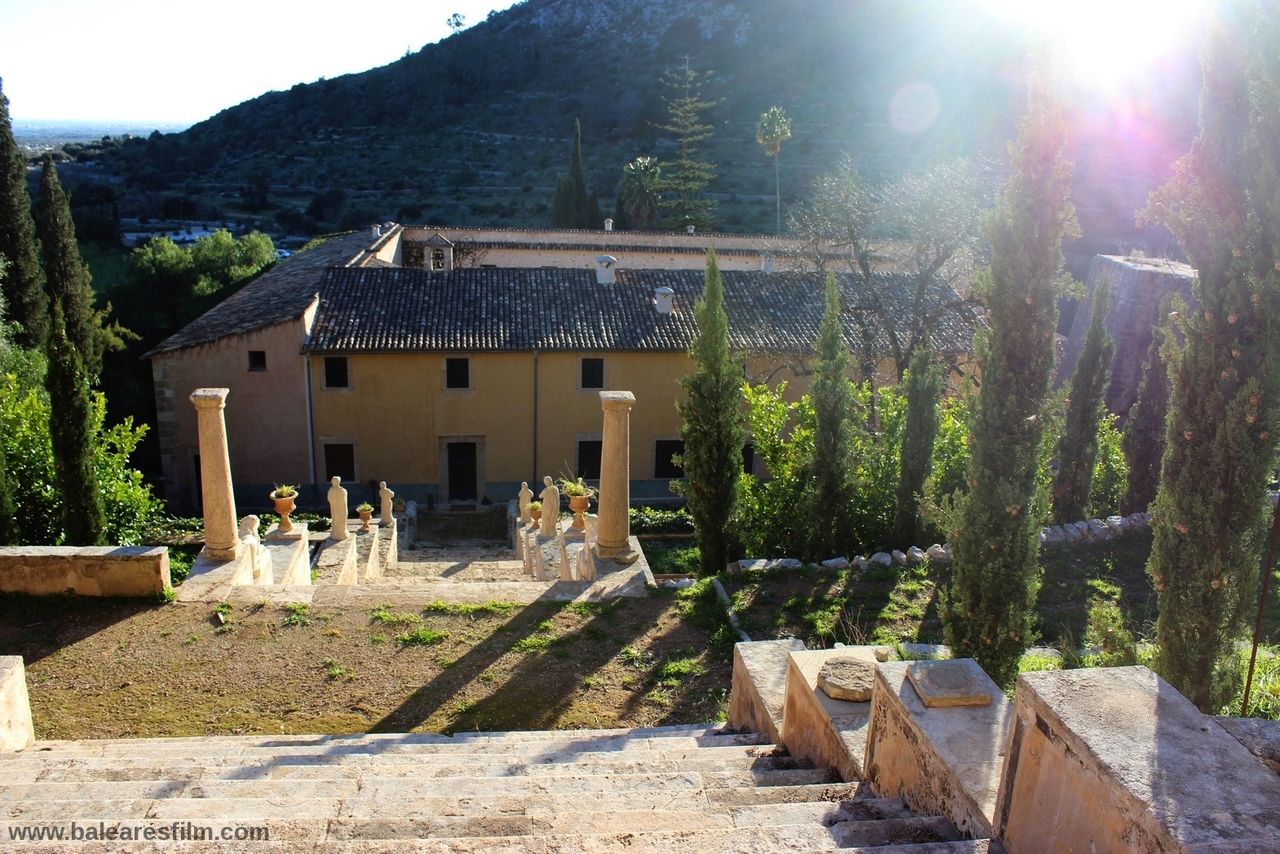 The Raixa estate, located in the Serra de Tramuntana mountains, measures around 520,000 m2 in area, 4,500 m2 of which is buildings while the rest is a variety of gardens, croplands and forest. The estate boasts impressive, majestic gardens with lush vegetation mainly consisting of pines and cypresses. The gardens feature picturesque architecture including a manmade grotto, a neo-Arab lookout point, a hermitage and a neoclassical temple which give the estate elements that evoke the past. Before entering it, at the peak of the gardens is a large stone staircase. Inside the building tere are all kinds of rooms, halls, alcoves, wine cellars and even stables.